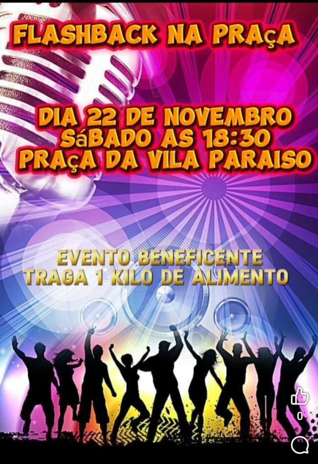 FLASHBACK NA PRAÇA DIA 22 DE NOVEMBRO NA PRAÇA DA VILA PARAISO @viniciusmarchese @edmundodavilaparaiso Evento Beneficente, traga 1kg de alimento! Deixe seu Comentário Direto do Facebook