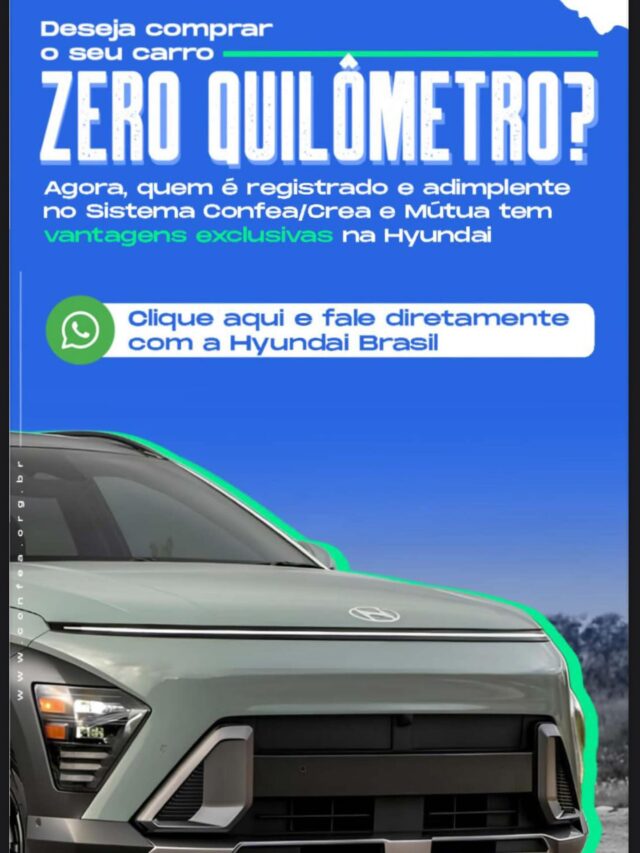 Com a *parceria do Confea com a Hyundai*, quem está registrado e em dia garante descontos especiais, promoções e facilidades de pagamento na compra do seu veículo 0 km.