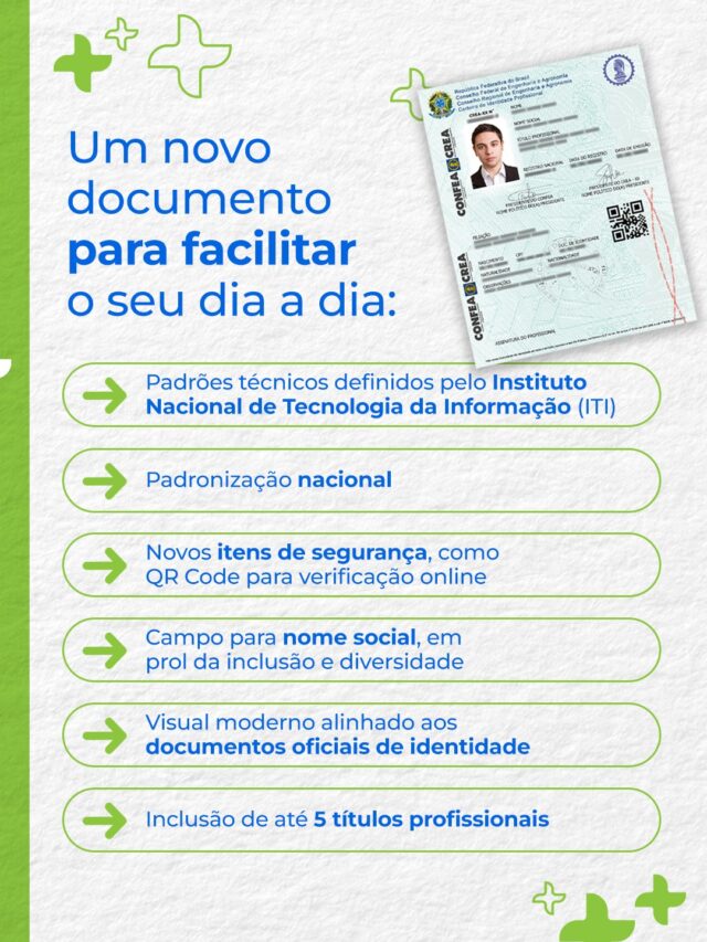Além do visual, novos itens de segurança, como o QR Code para validação online, facilitam a verificação rápida da regularidade profissional, e a padronização nacional traz um único modelo para todo o Brasil, facilitando reconhecimento e confiança.