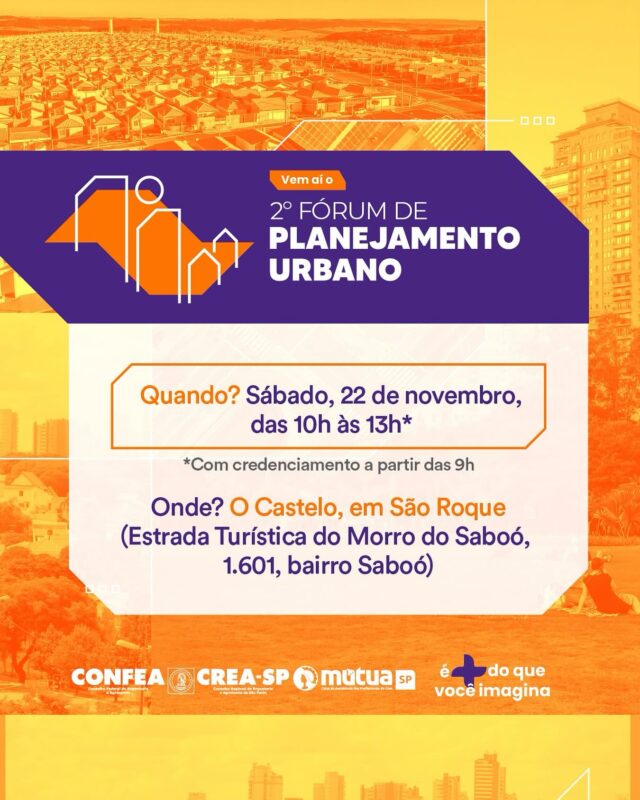 O 2º Fórum de Planejamento Urbano do Crea-SP chega para debater soluções que unem desenvolvimento, sustentabilidade e qualidade de vida.