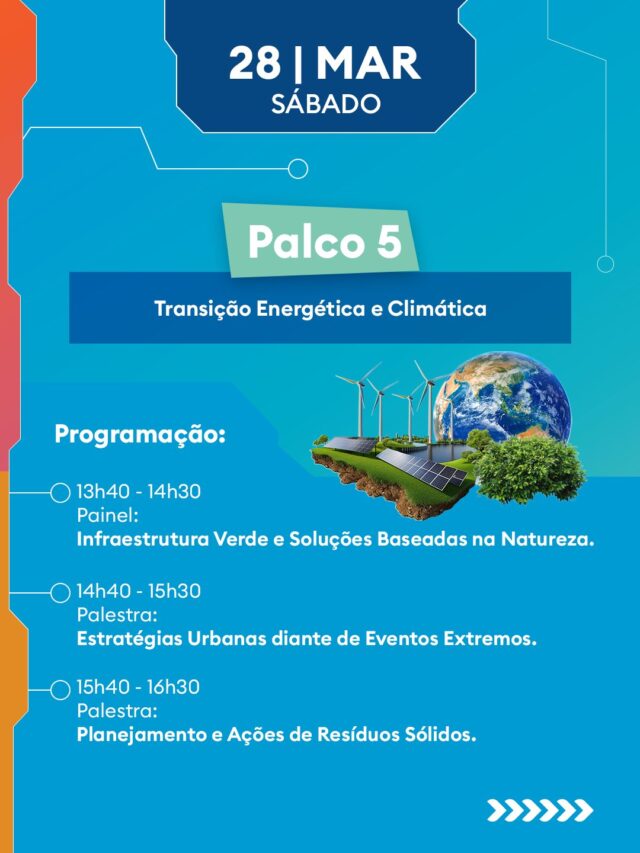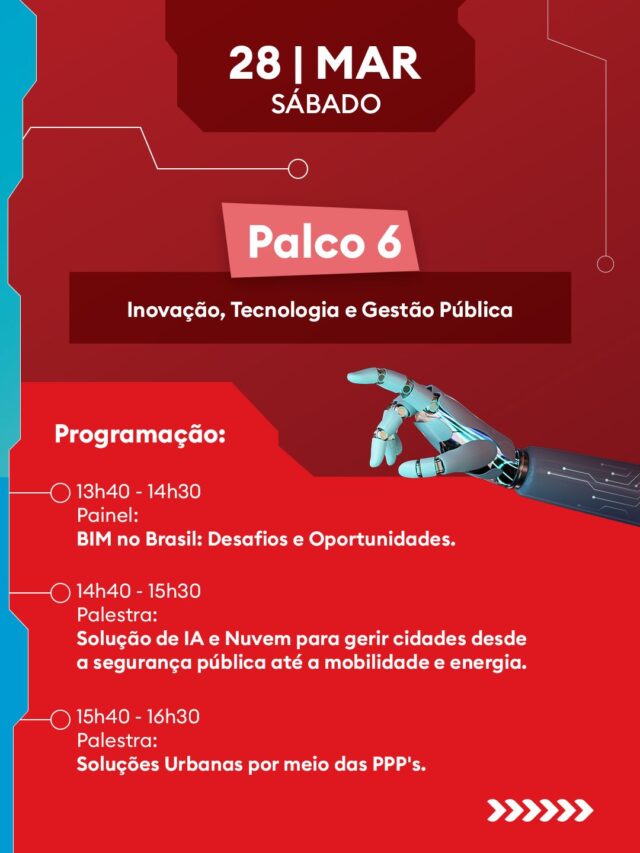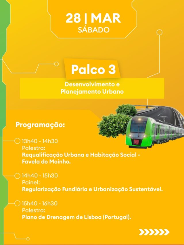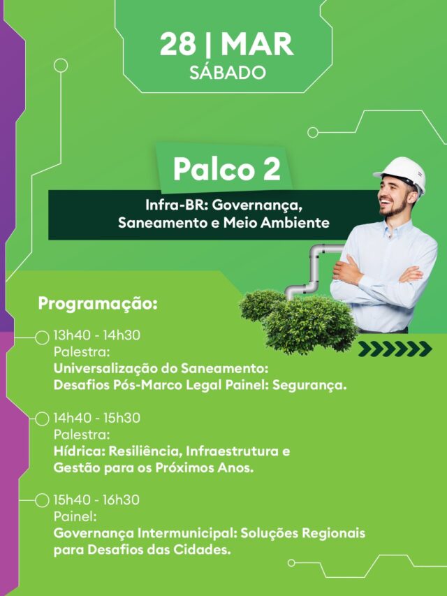 A programação de sábado (28/03) está dividida em 6 palcos temáticos, com debates guiados pelos eixos do Infra-BR, o novo índice que mapeia a realidade da infraestrutura nacional: