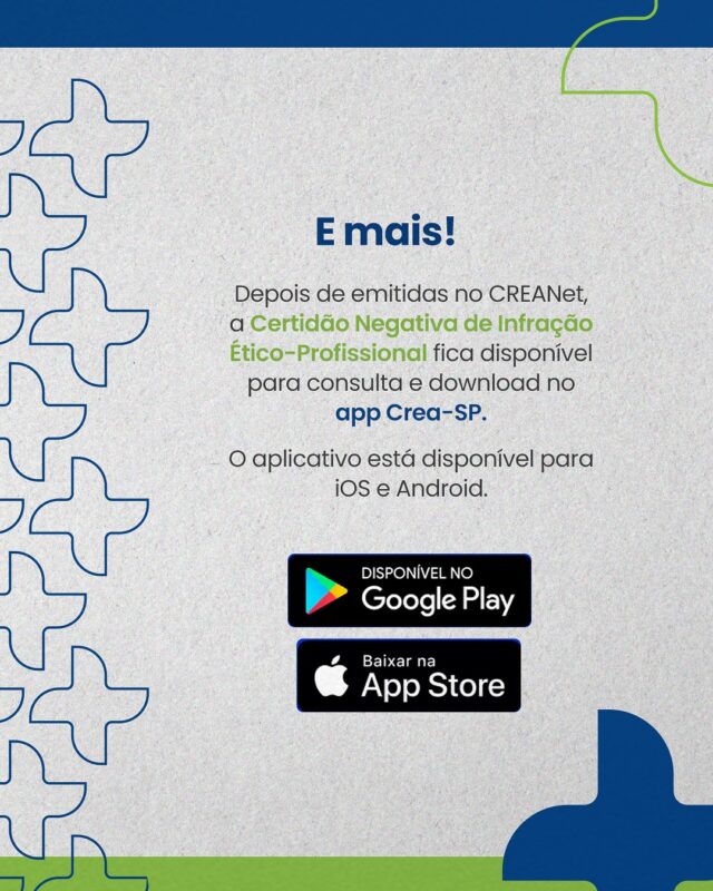 #repost Crea-SP – Transparência, valorização e confiança para quem constrói o futuro com responsabilidade: são essas as funções da Certidão Negativa de Infração Ético-Profissional.